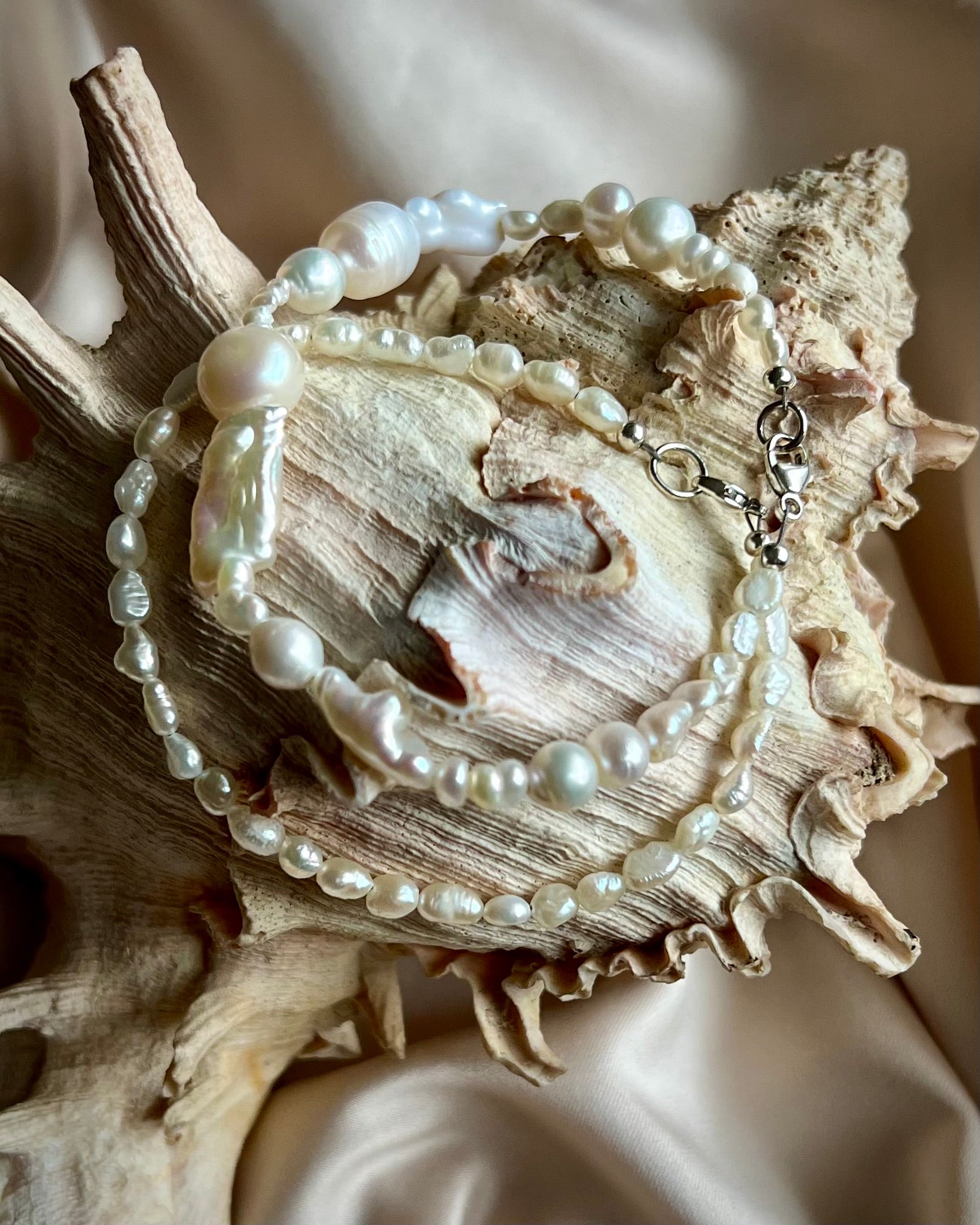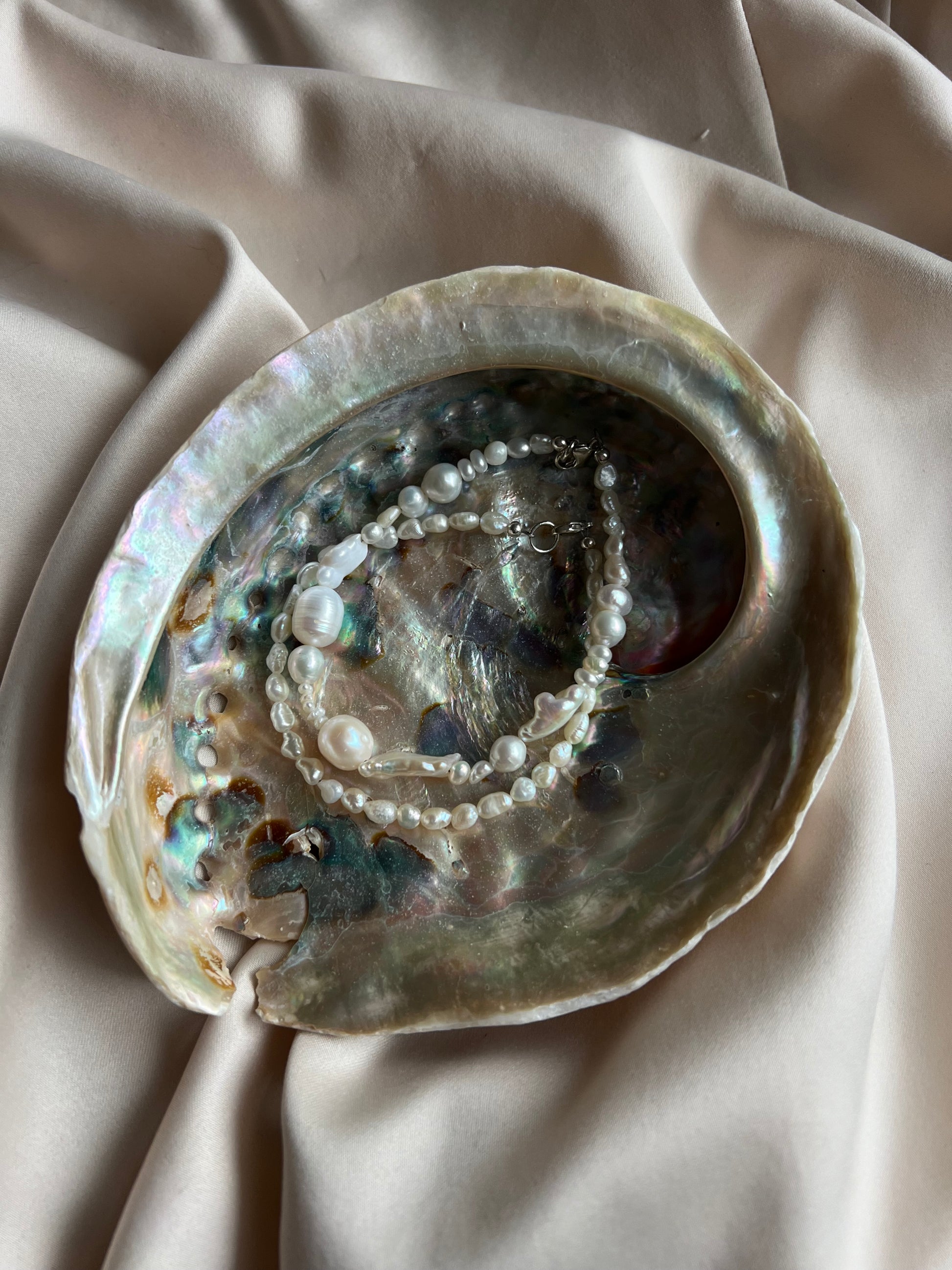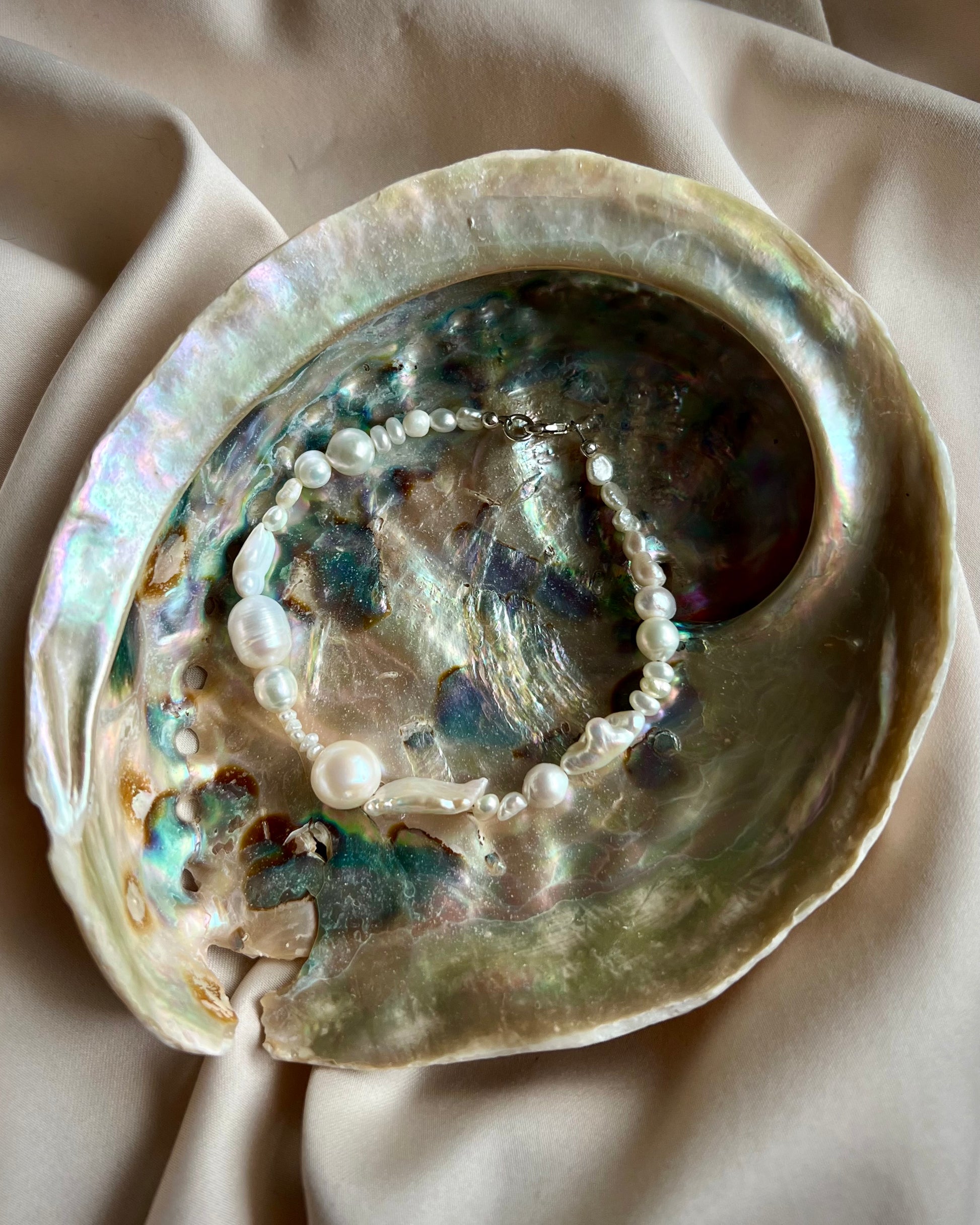 ECLIPSE BOLD: iridescent freshwater pearls of various shapes and sizes, sweet and not too chunky.